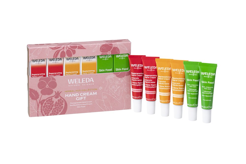 今回のプレゼントである『ヴェレダ ハンドクリーム ギフト』は、気になる手肌の乾燥を潤すハンドクリーム2種に加えて、乾燥肌のレスキューケアクリーム、スキンフードのミニサイズが2本ずつセット。